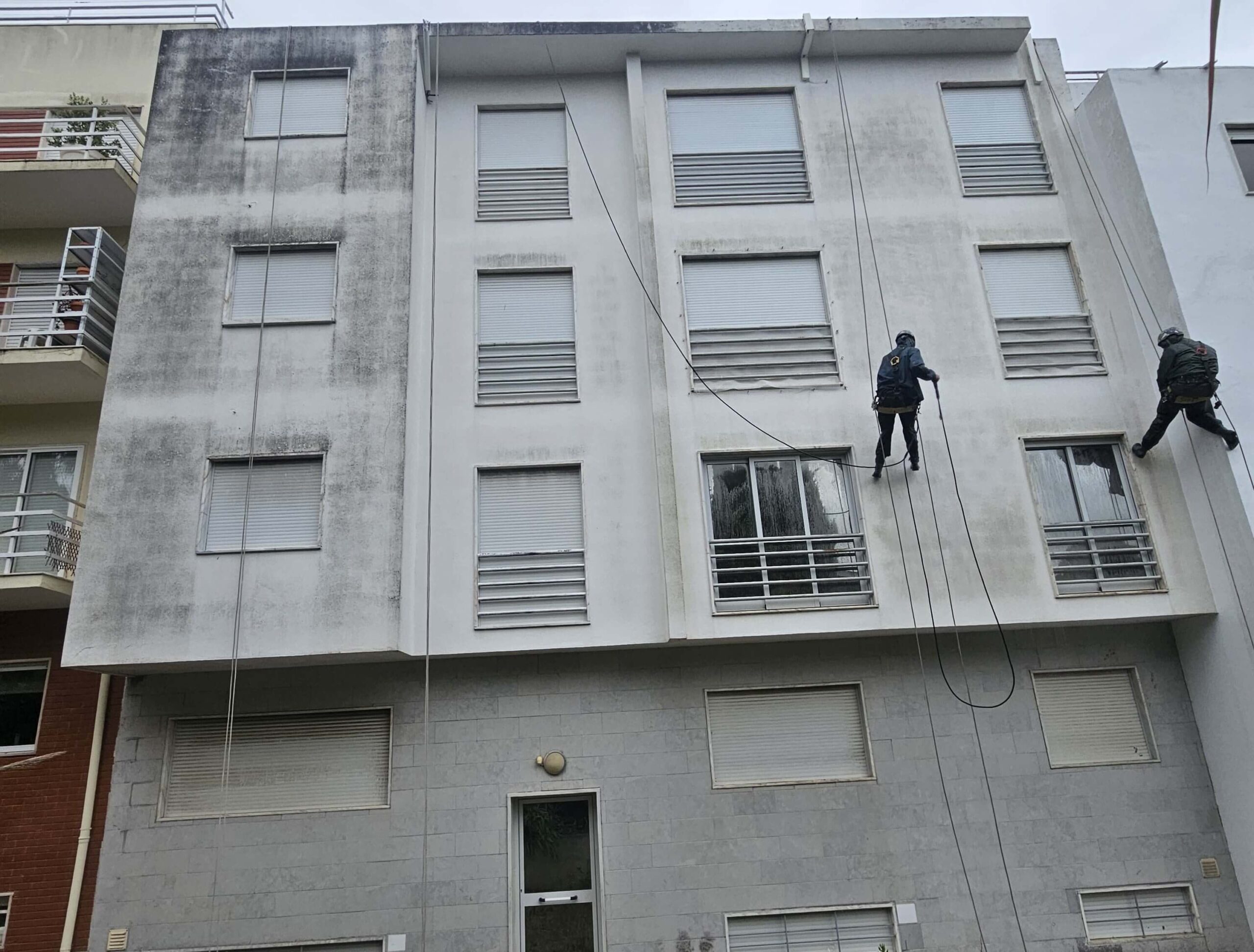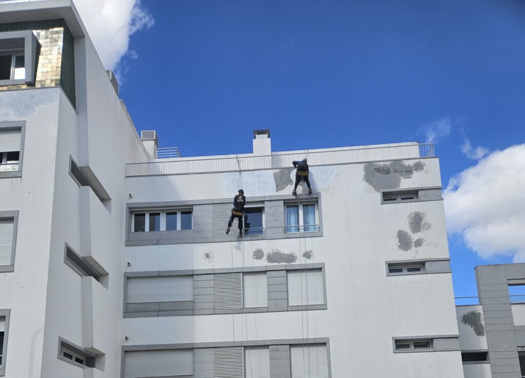 Pintura de fachadas com acesso por corda.